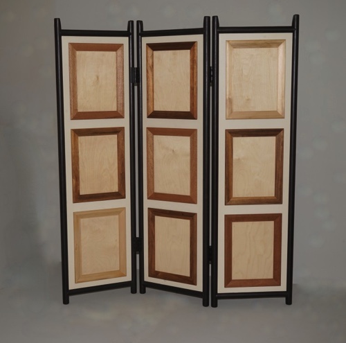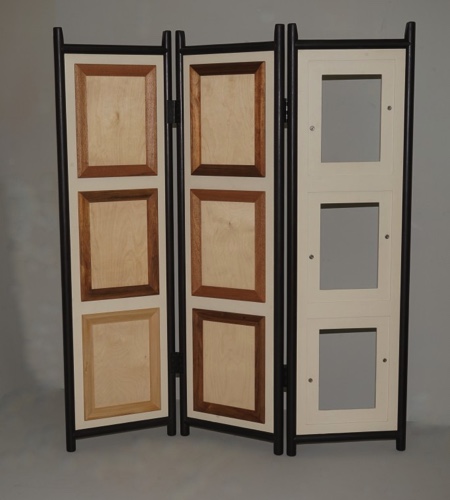 Folding screen gift for an artist to display her works on both sides. Charred Qld maple. 1800mm high