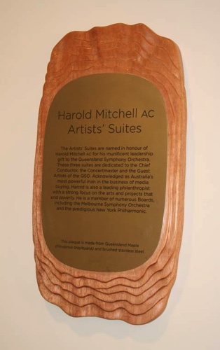 One of 6 plaques in various Qld timbers acknowledging donors of QSO